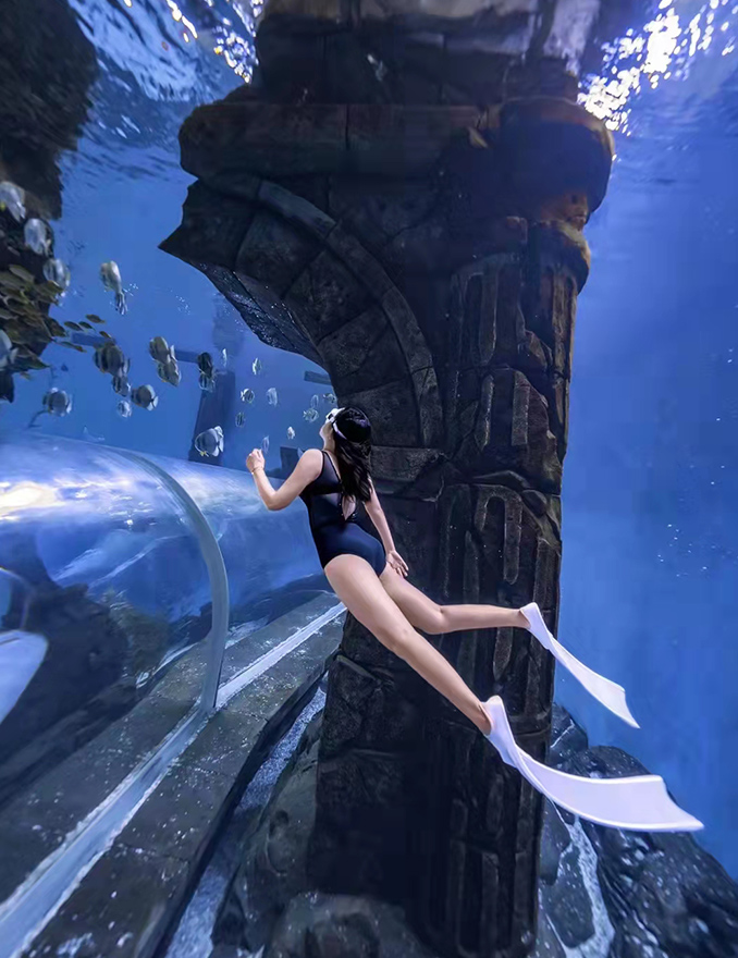 哈爾濱波塞冬全景水下隧道,擁有全國僅有的以展現(xiàn)充滿傳奇色彩的海神之戰(zhàn)為基礎的巨幕海底世界,全世界獨一無二,面向全國教練團隊開放合作,水肺,自由潛,美人魚,水下拍攝,提供專業(yè)水下攝影場地。
